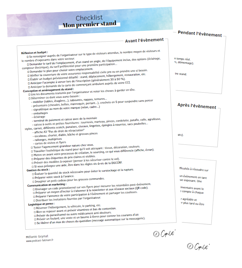 Checklist “Préparer mon premier stand”